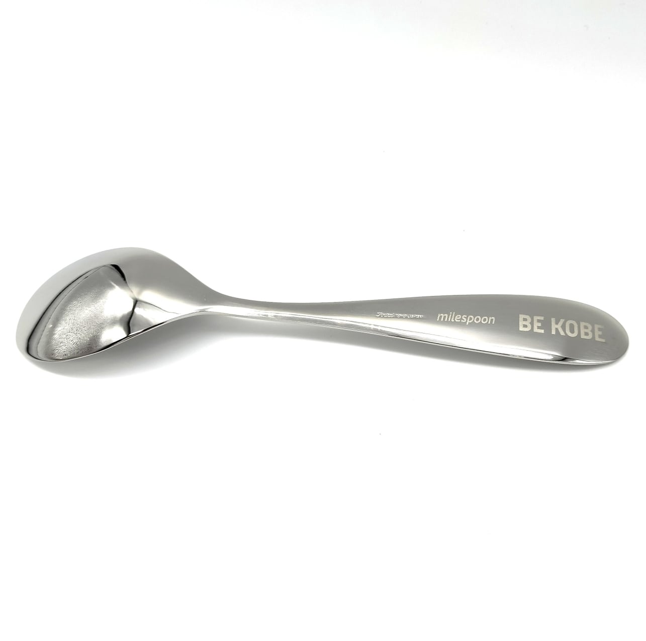 ステンレス製のスプーンの持ち手には「六甲最高」の文字と標高を表す「931」が、裏面には神戸市民の合言葉「BE KOBE」がレーザーマーキングされています。新潟県燕三条で製造されたこのスプーンは、独自の薄い先端加工により、カレーや炒飯などがすくいやすい形状になっています。